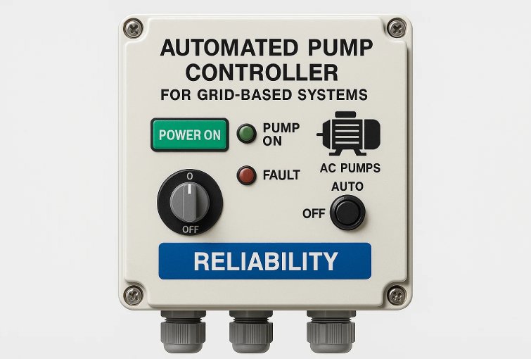 An automated pump controller designed for grid-based systems. Ensures safe operation of AC pumps and enhances reliability.